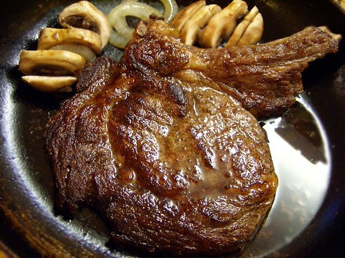 9:00 pm - 1 gigantic ribeye steak, broccoli rabe, fingerling potatoes